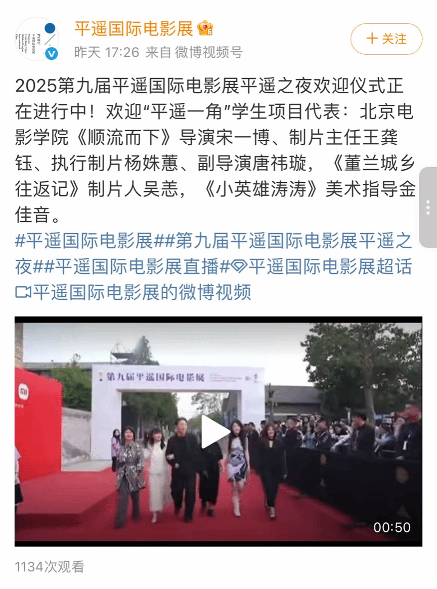 “平遥一角”是平遥国际电影展教育板块的常设单元,每年邀请高校影视艺术专业教师及学生代表,精选优秀学生创作于平遥国际电影展进行分享,为新一代创作者提供多样的交流平台,相互促进、共同发展。该单元长期致力于发掘具有创作潜力的青年影人,鼓励高校学生以影像表达思想、记录时代。此次《顺流而下》获颁“最佳学生短片”,是对主创团队集体努力的高度肯定,也为西外戏文学子提供了宝贵的实践平台与行业认可。