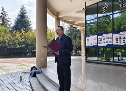 艺术学院学生魏馨甜代表全体参与活动的学生郑重承诺,将以饱满热情投入劳动任务,在实践中锤炼党性、加强协作,深入了解学校的一草一木,持续学习校园环保节能知识,不断提升自我管理服务意识,倡导全体同学爱校如家,为整洁、美丽、温馨的校园尽自己的一份力量。