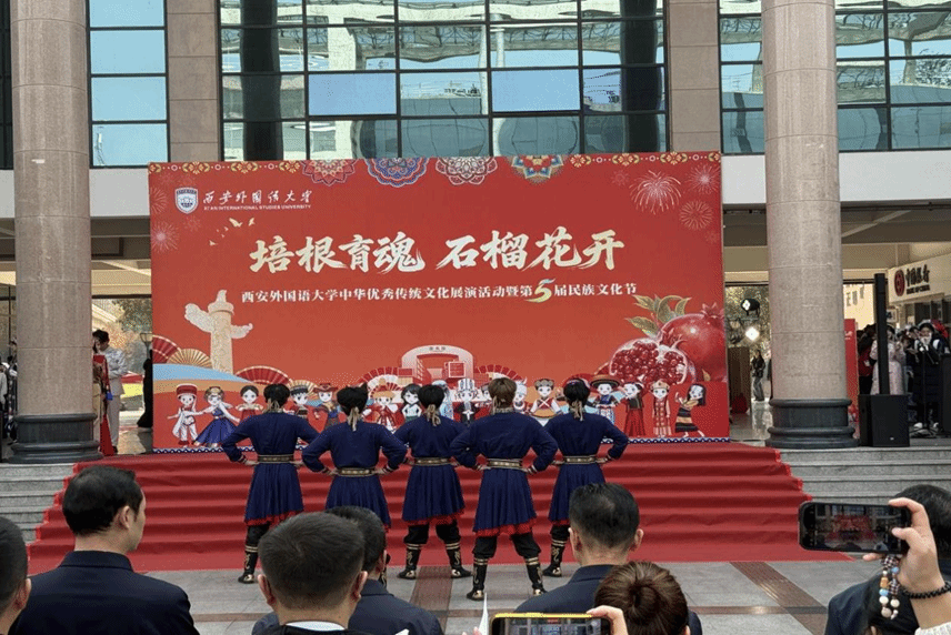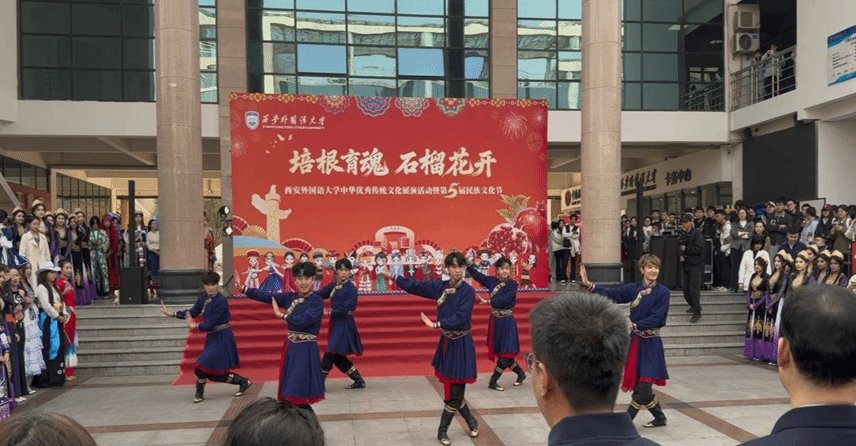 2025年11月3日中午,西安外国语大学“中华优秀传统文化展演暨第五届民族文化节”在长安校区学子广场精彩启幕。艺术学院2024级表演专业赵艺豪、水宇寒、李明阳、武帅、陈芃熹、张博钦六名同学,以一支融合传统与青春的蒙古族舞蹈担纲开场,用灵动舞步搭建民族文化交融之桥,为整场活动拉开序幕。
