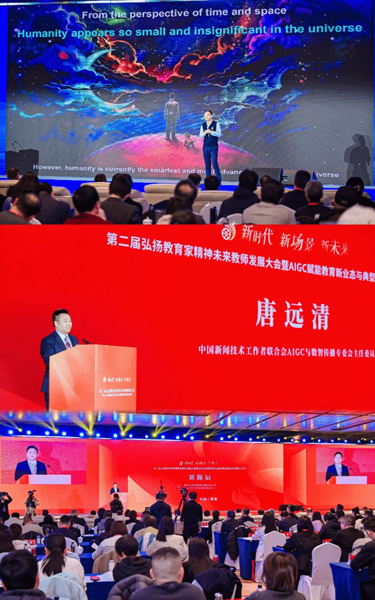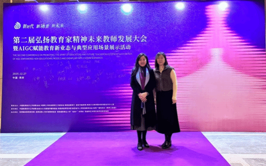 12月27日,第二届弘扬教育家精神未来教师发展大会暨AIGC 赋能教育新业态与典型应用场景展示活动在西安隆重举行。本次活动恰逢国家全面推进教育数字化、加快“十五五”时期教育强国建设的关键阶段,以“新时代・新场景・新未来”为核心主题,由陕西省教育厅、陕西省科学技术协会、陕西省社会科学院等多家单位联合主办,汇聚了全国政协常委、中国科学院院士武向平,中国传媒大学主流融媒体研究中心主任唐远清等学界泰斗、行业专家,以及来自学前教育、基础教育、高等教育及职业教育全学段的院校代表、一线教育工作者,通过政策解读、案例剖析、实践分享、影像赋能等多元形式,共探教育创新发展路径,贡献地方实践样本。副院长屈晓、副书记和宁代表学院受邀参会。