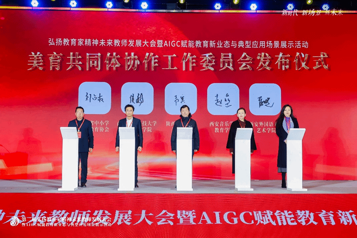 会上,“美育共同体协作工作委员会”正式成立,该委员会由我校艺术学院、陕西师范大学美术学院、西安电子科技大学人工智能学院、西安音乐学院音乐教育学院等单位共同设立,旨在构建融合共生的教育生态。屈晓在发布仪式上与各发起单位代表共同见证这一教育协同发展的重要时刻,并代表戏剧影视表(导)演专业委员会发表专项报告。