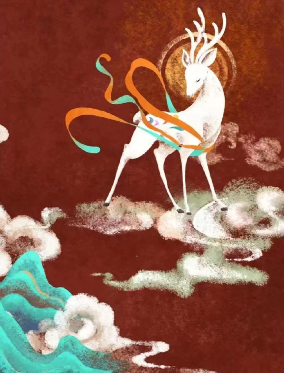 作品取材自敦煌莫高窟经典壁画《鹿王本生图》,作品借九色鹿的故事,传递“言必信,行必果”的诚信受义准则,彰显“仁者爱人”的仁爱慈悲思想,更诠释出敬畏自然、和谐共生的古老智慧,充分表达了丰富的中华优秀传统文化。