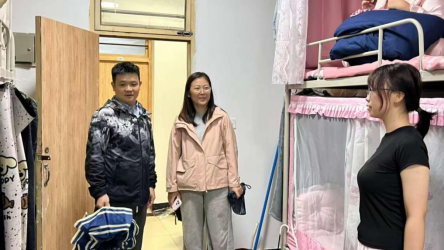 “家是哪里的?”“对学校的饮食和住宿还习惯吗?”“有没有什么困难需要学院帮助解决?”每到一个宿舍,领导老师们都与新生进行亲切交谈,细致地询问同学们的生源籍贯、入学感受和适应情况,耐心解答同学们提出的各种问题,并叮嘱大家要尽快转变角色,熟悉新环境,融入新集体;要互相关心、互相帮助,共同营造和谐友爱的宿舍氛围;同时要提高安全意识,保护好人身和财产安全。