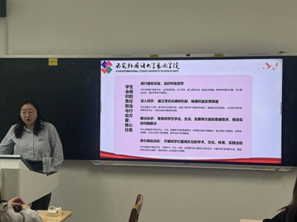 为深入学习《2025年秋季学期陕西省学联学生会组织工作人员培训学习资料》文件精神,引导学生会骨干强化使命担当,艺术学院学生会于2025年9月25日中午在JC108举行专题培训会。会议由主席团成员黄姣姣主持,指导老师韩佩晔与学生会全体工作人员参加。