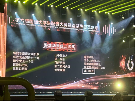 吴昱锦同学还与新闻与传播学院的学子联合组队,共同参加了AI游戏动漫赛道的角逐。成员经过默契配合,以精准的声音塑造与饱满的情感表达,赢得了评委组认可,最终荣获游戏动漫赛道二等奖。
