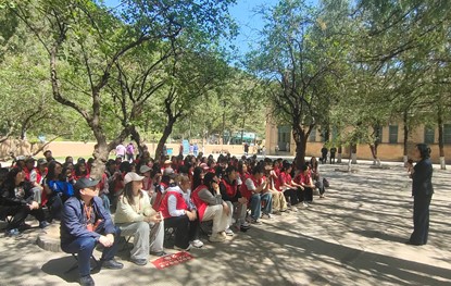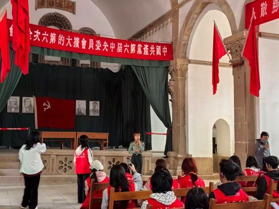在杨家岭革命旧址,简朴而庄严的中央大礼堂见证了中国革命的重要时刻。随后杨家岭革命旧址管理处文博副研究员张茁以《爱国青年奔赴延安的信仰与抉择》为题的现场讲课,讲述了上世纪三四十年代无数知识青年舍弃安逸、穿越封锁、奔赴延安的壮举,让学子们在回望先辈的青春选择中汲取前行力量。这场生动的现场教学课将历史的信仰回响与当代青年的使命担当紧紧相连,进一步激发了学子们的爱国热忱。
